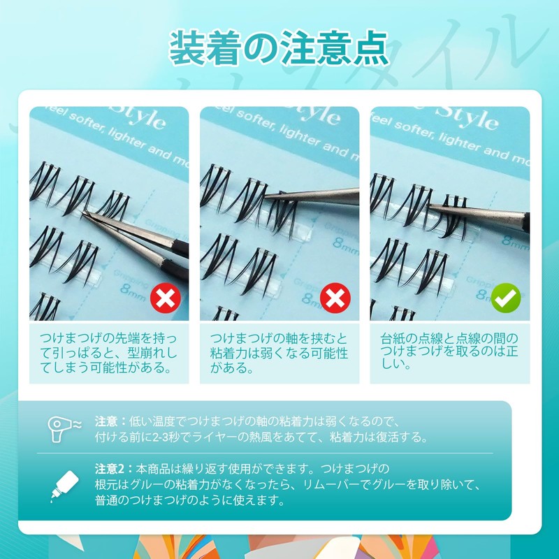 - Under False Eyelashes Details: Flame Style Thickness: 0.07mm, Curl: J With a length of 0.2 - 0.3 inches (6 - 8 mm), it can be used as a natural or gorgeous Includes 1 tweezer