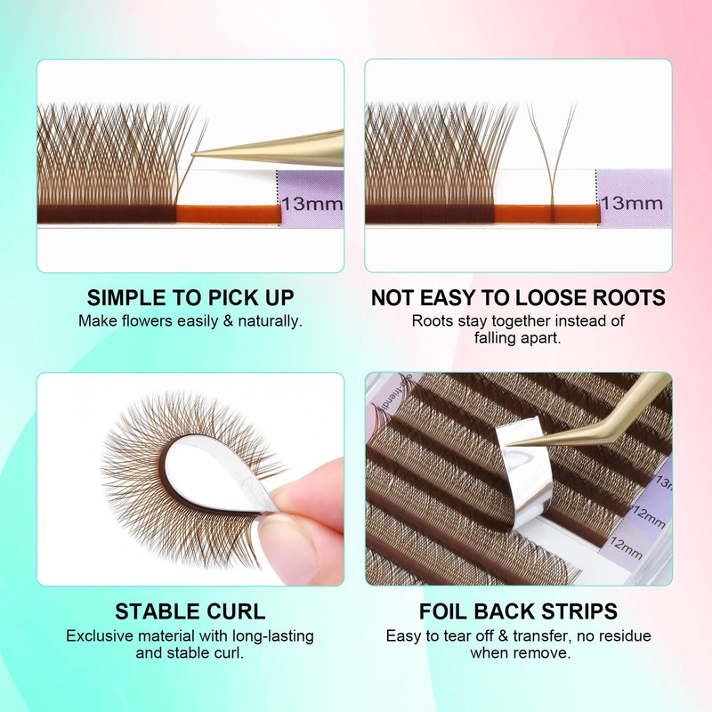 NAGARAKU yy Eyelash Extensions Brown Color y lash 0.07mm DD Curl Mix Tray 8-15mm Premade 4D Easy Fan Russian Volume Cluster 12 rows pre Fanned Wispies Crisscross Eye Lashes
