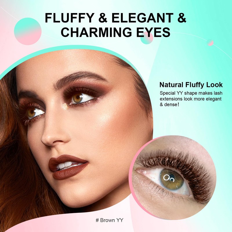 - UNIQUE LOOK: The arrangement of the yy lashes roots is clearly visible and lashes are easy to pick up without breaking the roots. Special YY type makes lashes extension look more graceful and fluffy.