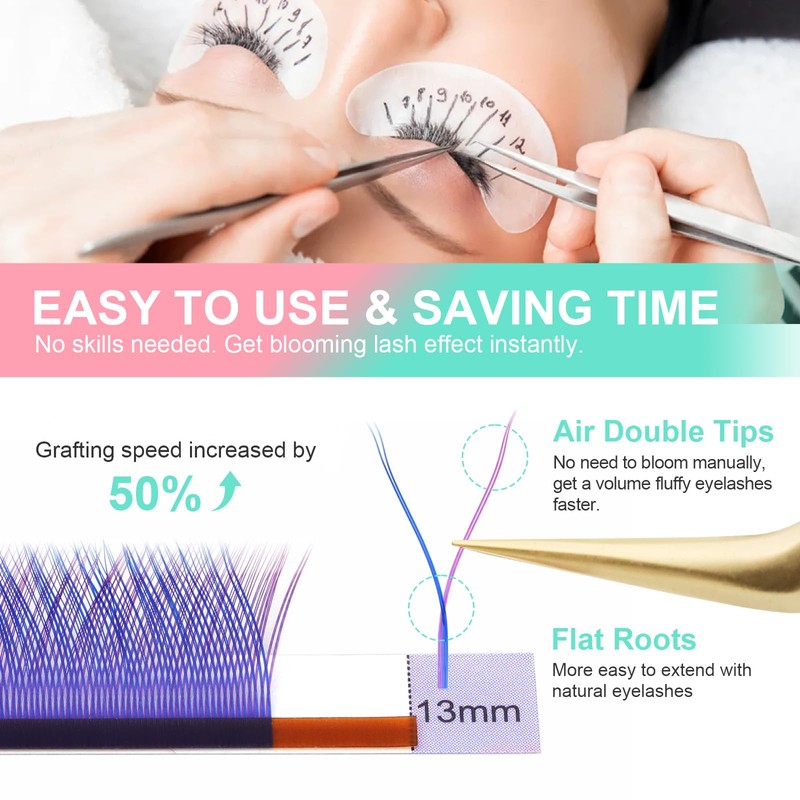 • AIR DOUBLE TIPS & FLAT ROOTS: These YY eyelash extensions with thin tips and glued roots create a perfect cross pattern that mimics the natural layering of real eyelashes and provides a flawless, natural look that blends beautifully with real eyelashes. The arrangement of the roots is clearly visible and the eyelashes are easy to pick up without breaking the roots
