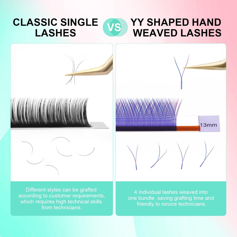• What is YY LASH? The base of the 4 eyelash extensions is connected together like a Y-shape. These are called YY eyelash extensions. It is very easy to make compartments by gripping them with tweezers. You can quickly get 4D compartments without previous knowledge