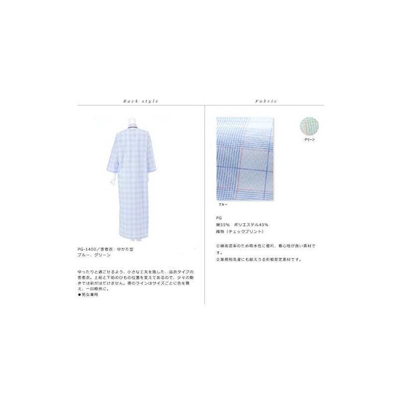 Nagayleben PG-1400 Unisex Patient Clothes, Yukata-Type Lab Coat, green