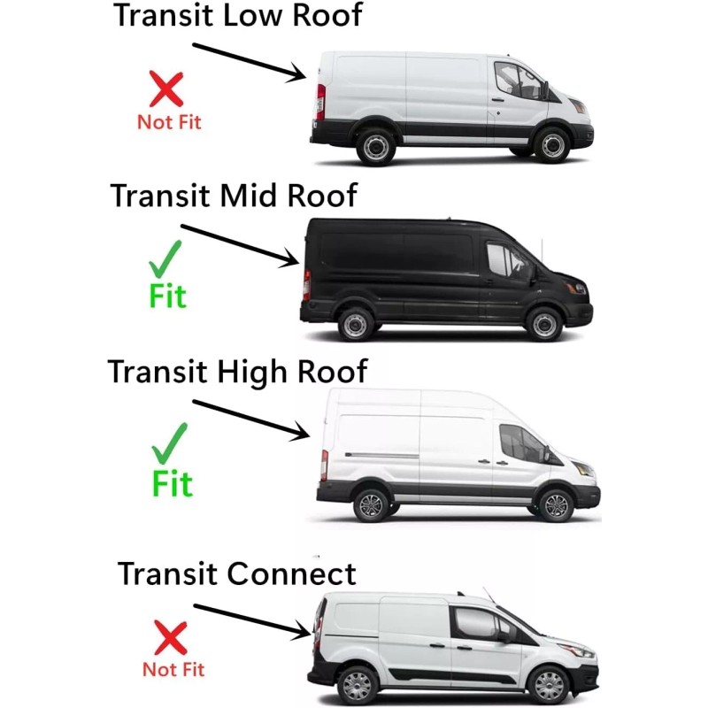 - Interchange Part Number: Door Glass Door Window, Fit 2015-2023 Ford Transit 100.8 '' Mid-Roof Van, 2015-2023 Ford Transit 110.2 '' High-Roof Van