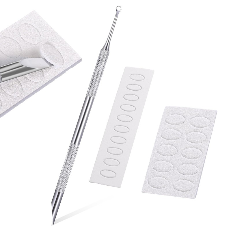 Nagelhautschieber Profi Edelstahl Doppelendig Nagelschieber Metallspatel Spatel Cuticle Pusher Reiniger zur Vorbehandlung mit Selbstklebend Schleifpapier für abgestorbene Haut Fingernägeln Maniküre