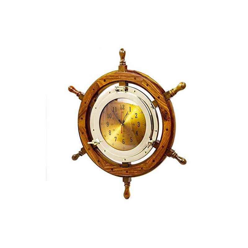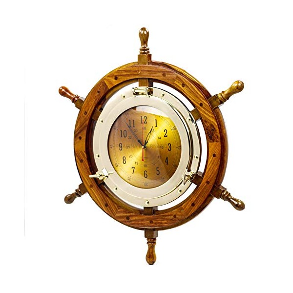 Nagina International 24" Exclusive Pirate's Nautical Ship's Steering Wheel Styled Porthole Clock | Lavish Wall Decor Gifts & Collectible (12" Clock)