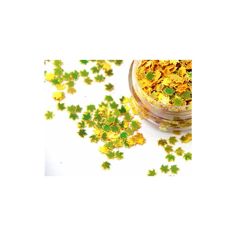 Nail Art Autumn Maple Leaf Glitter Sequin 4mm (Green Gold)