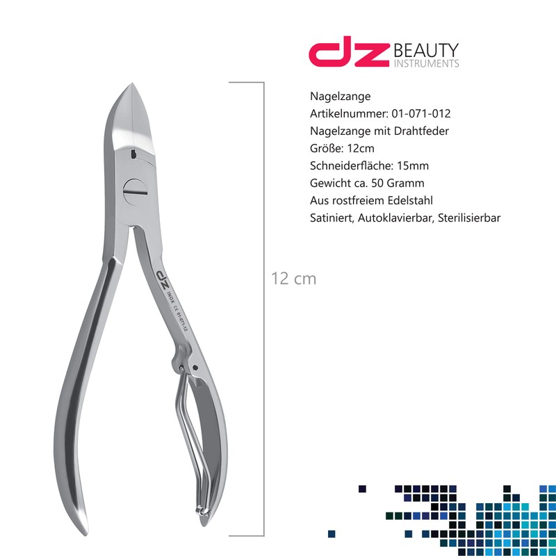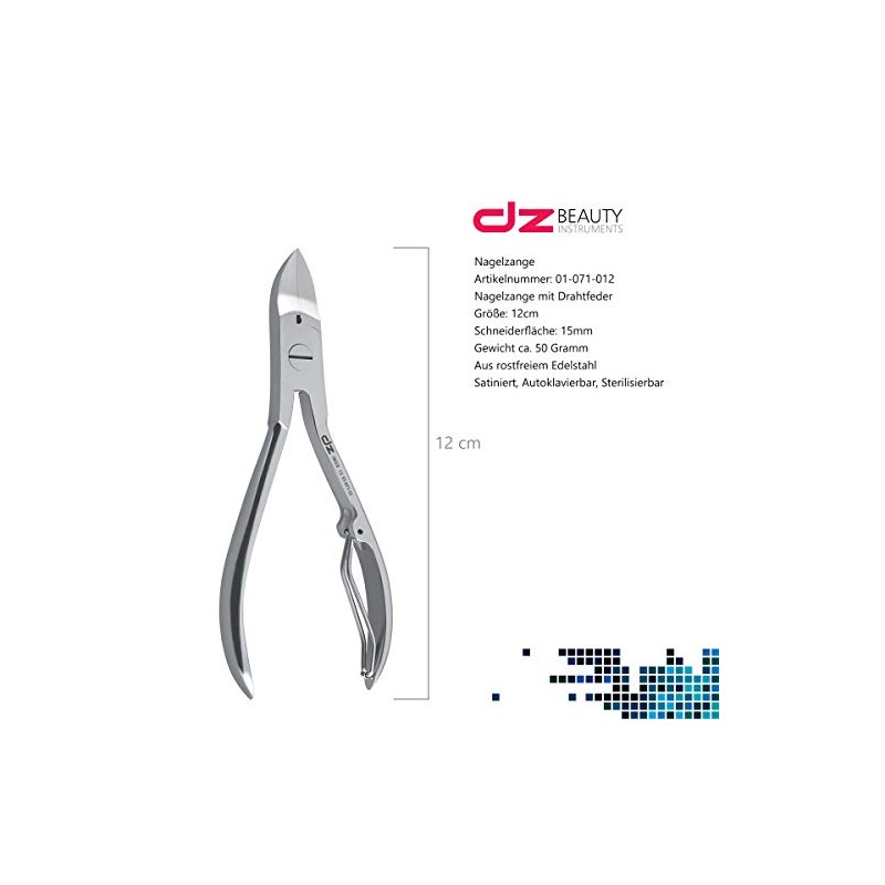 - Length: 12 cm - cutting surface: 15 mm - weight: 50 g - high-quality surgical stainless steel, satinised. Autoclavable and sterilizable