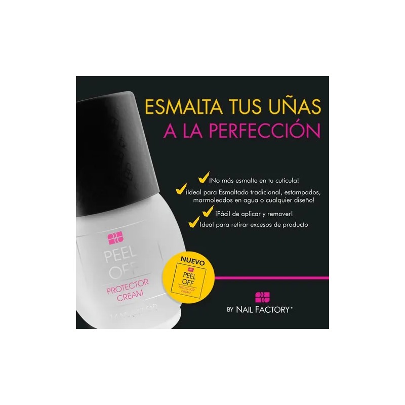 Logra un manicure profesional y sin manchas con la Crema Protectora para Cutícula Nail Factory Peel Off. 💖 Este innovador producto está diseñado para proteger la piel alrededor de tus uñas durante la aplicación de esmaltes, gel semipermanente o glitter. Su fórmula de secado rápido te permite ahorrar tiempo y esfuerzo, ya que se remueve en una sola pieza sin dejar residuos. Es muy fácil de usar: simplemente aplica una capa, espera unos segundos a que seque y continúa con tu aplicación de uñas. Una vez que hayas terminado, retira el producto fácilmente con unas pinzas para revelar unas uñas impecables. ✨