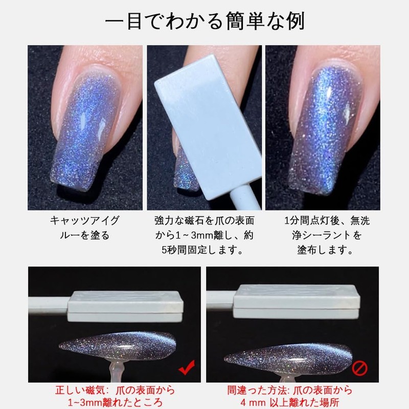 - Easy to Use: Place the magnet near the nail for about 10 seconds and avoid touching the surface of the nail, so you can easily obtain the 3D cat's eye effect within 5-10 seconds. Thoroughly wash after use, clean and safely repeat use
