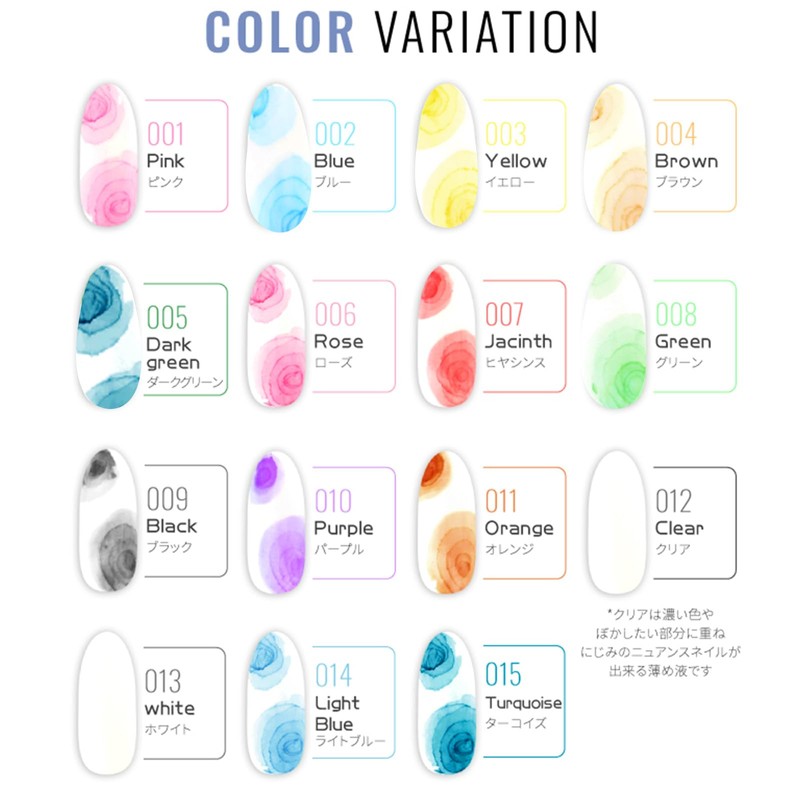 Ink colors allow you to enjoy endless art! You can create a variety of art with your own taste such as tortoise shell nails, hanging nails, marble nails, nuance art, watercolor painting, blur art, flower atto, and more. Upgrade with art stickers and art parts. Simply drape over the unhardened gel of colored gel to create a super cute nuanced art. Can be used on both matte gels and unhardened colored gels.