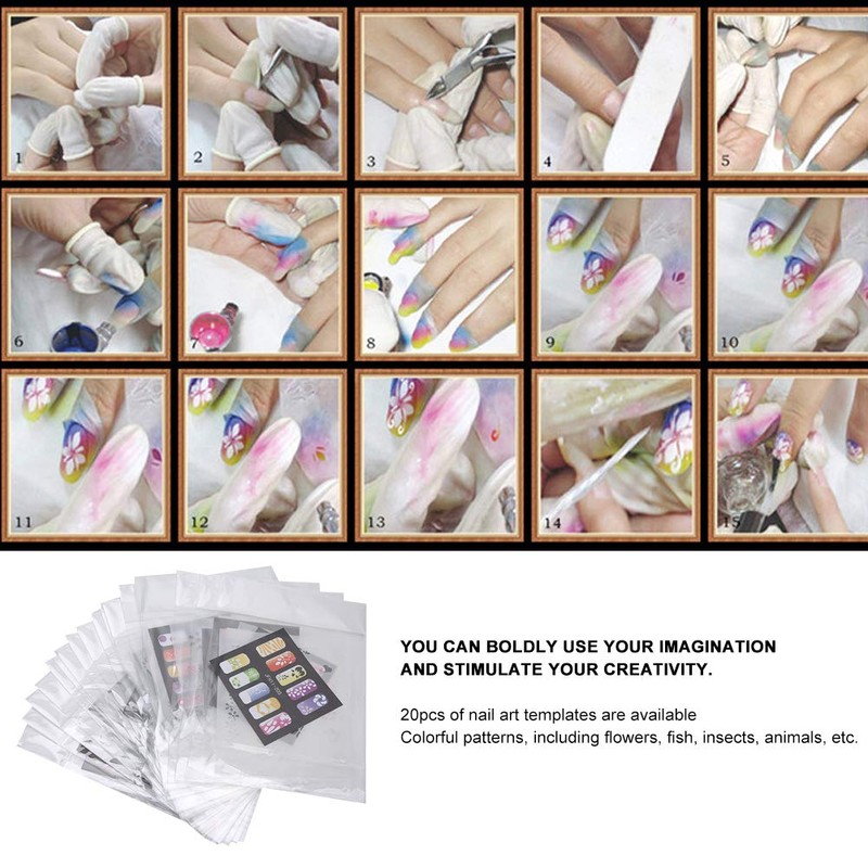 5. 20pcs of nail art templates are available, colorful patterns, including flowers, fish, insects, animals, etc.