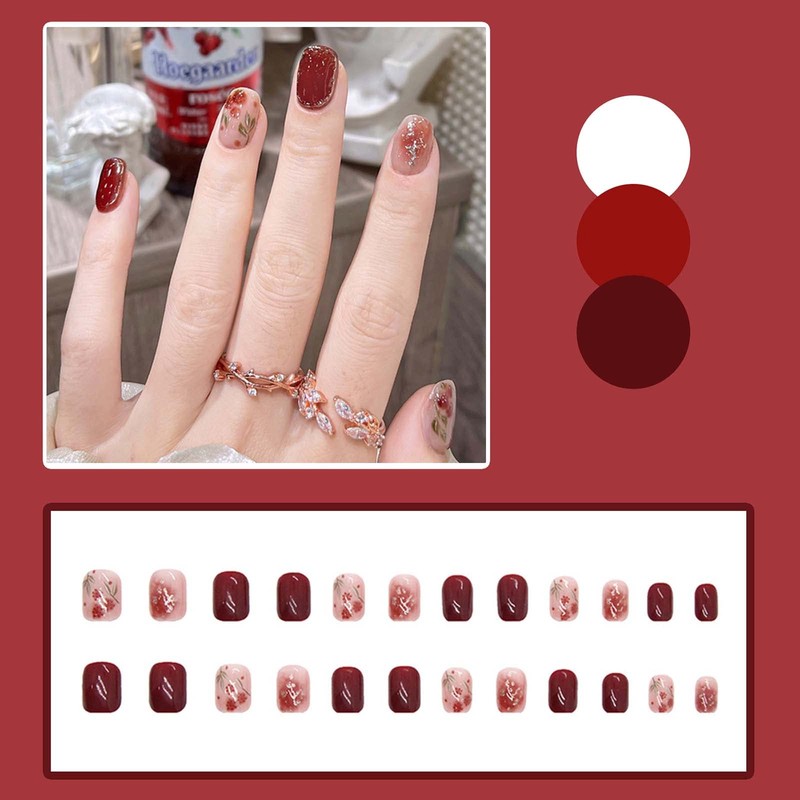 Nail Tips, False Nails, 24 Pieces, Short, Popular Nail Tips, Red Brides, Cute Small Flower Nails, Weddings, Parties, Weekend Dates