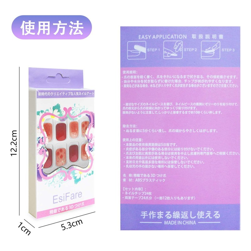 - Easy to Apply: First remove the nail file and lightly polish the surface of the nails, wipe the nails until they are clean, and then dry. Then select the right size nail, then paste the double-sided tape on the back of the nail. Finally, paste the nail from the base of the nail to the front of the nail, and press it for about 10 seconds until it is firmly adhered to
