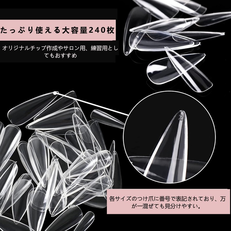 Nail Tips, Transparent, Ultra Thin, Set of 240, Clear Tip Set, Clear Nail Tip...