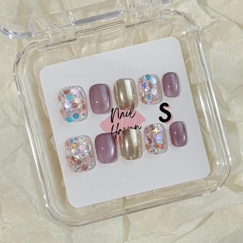 NailHaven| cat eye collection |all kinds of cat eye nails| short press-on nails |cute nails| nails | acrylic press-on| fake nails |Handmade | high quality Press on nails 10 pcs|reusable nails|nail art|nail charm|handmade press ons|uña sacri lic as:_burgundy_M