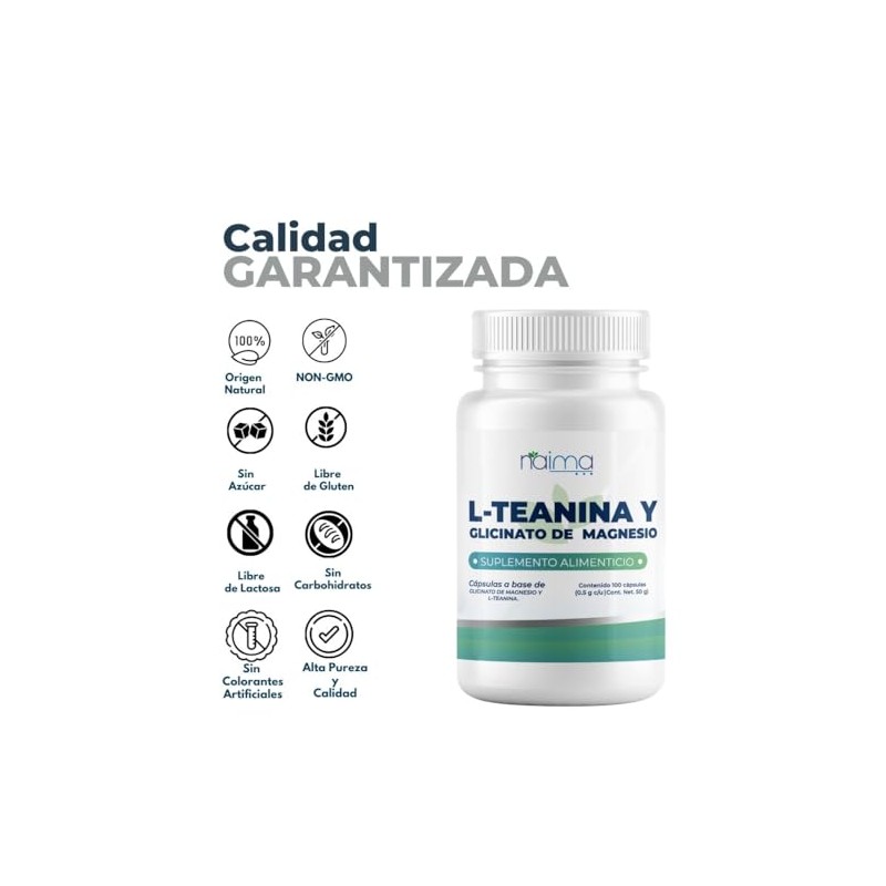 NAIMA - NAIMA L-Teanina + Glicinato de Magnesio, 100 Cápsulas | 200mg L-Teanina y Magnesio de Alta Absorción | Fórmula Potente Sin Rellenos | Concentración, Relajación y Bienestar. ✅ Diseño innovador que supera las expectativas. Tecnología avanzada y rendimiento superior. 💎 Calidad superior certificada. Ideal para quienes buscan lo mejor en calidad y estilo. Producto auténtico con satisfacción total asegurada. ¡No te quedes sin el tuyo y aprovecha esta oportunidad única!