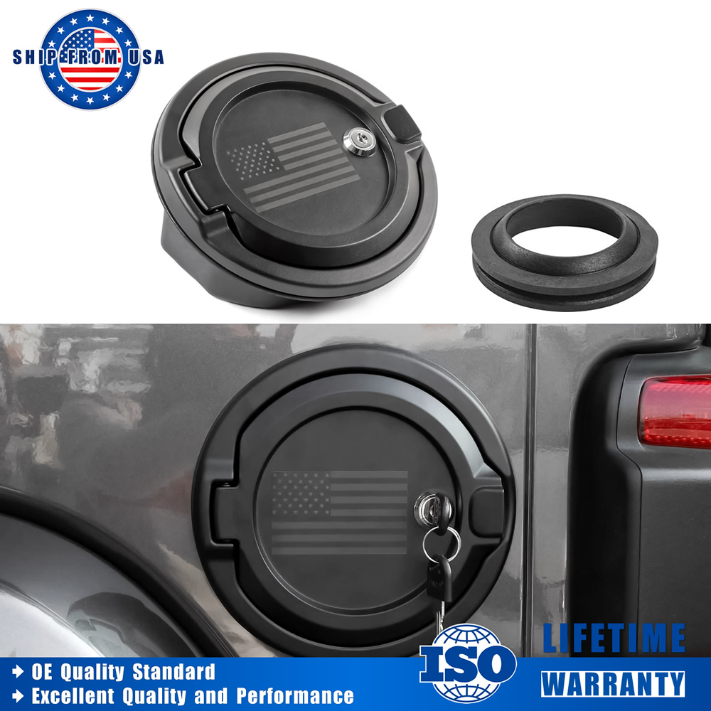 NAIS For Jeep Wrangler JL 2018+ USA Flag Locking Gas Tank Cap Fuel Filler Door Cover
