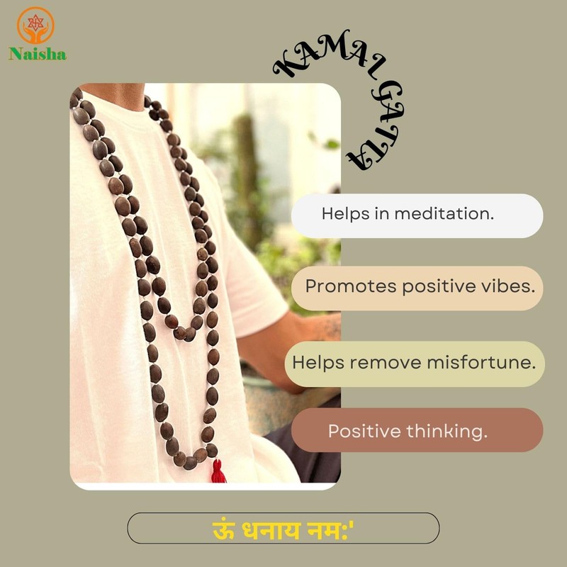 - [ BELIEF ] It is believed that renders of this mala get plenty of wealth if you recite it on the Akshaya Tritiya. Kamal gatta mala is also known as dried lotus bead mala. Poverty is the worst curse of life. To banish this curse that could be haunting a house for generations, one must try this mala. ] This lotus seed jewellery has a pleasant aesthetic look. It can be worn for body protection and spiritual evolution.