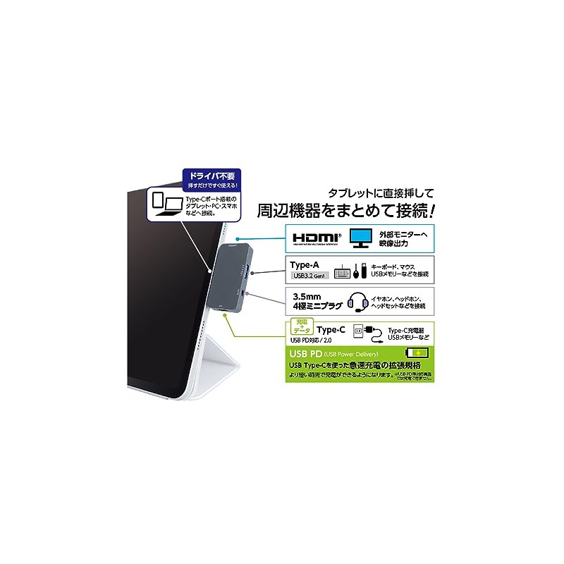 - Connects to tablets, PCs, smartphones, etc. with Type-C port