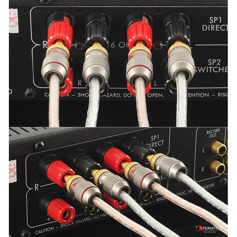 - ✅ Nakamichi FanLock BFA banana plugs fit seamlessly directly into your audio component connection terminals and save you the hassle of screwing in or unscrewing speaker cables - especially in changing space conditions.