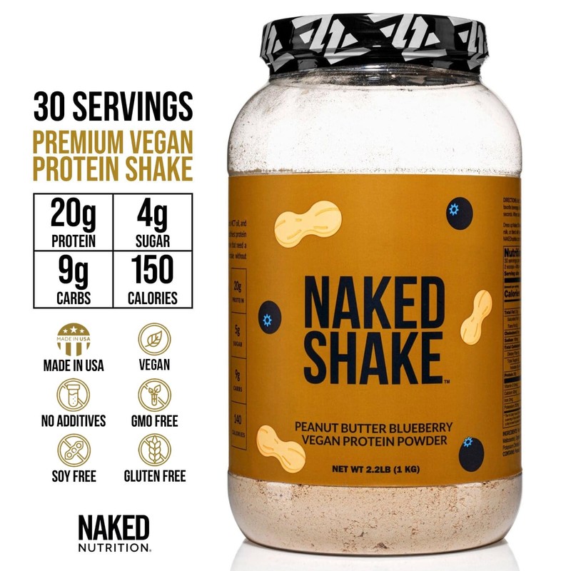 Naked Nutrition Naked Shake - Peanut Butter Blueberry Protein Powder, Plant Based Protein With Mct Oil, Gluten-Free, Soy-Free, No Gmos Or Artificial Sweeteners - 30 Servings