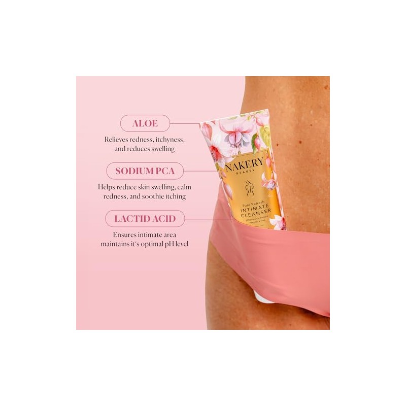 Nakery Limpiador Vaginal Con Ph Equilibrado Para Mujeres - Hidratante Femenino Con Aloe Y cido Hialurnico - Limpiador Vaginal Nutritivo Que Promueve