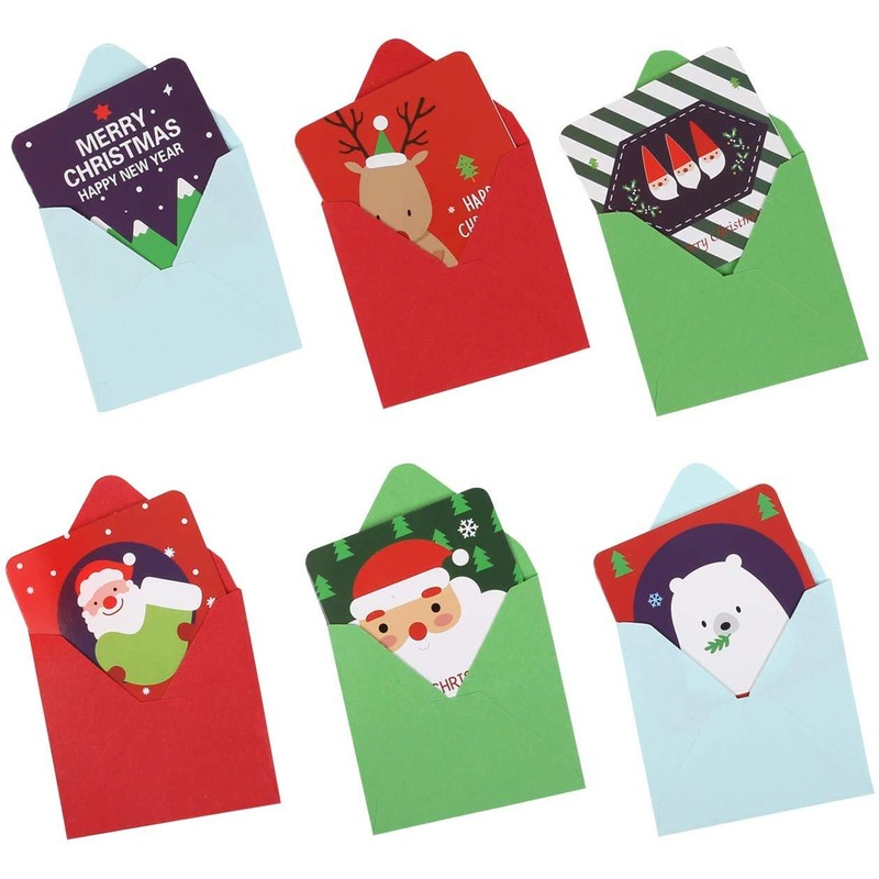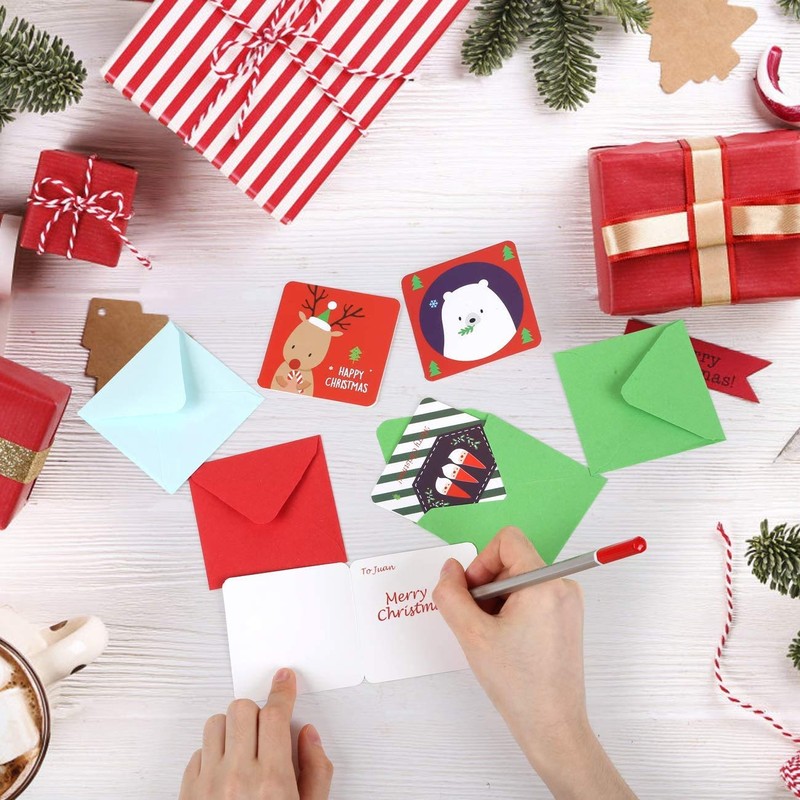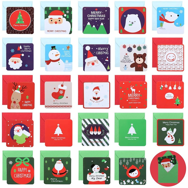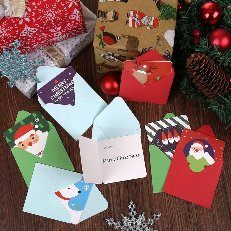 - Viene con 24 mini tarjetas de felicitación de Navidad y 24 sobres pequeños.