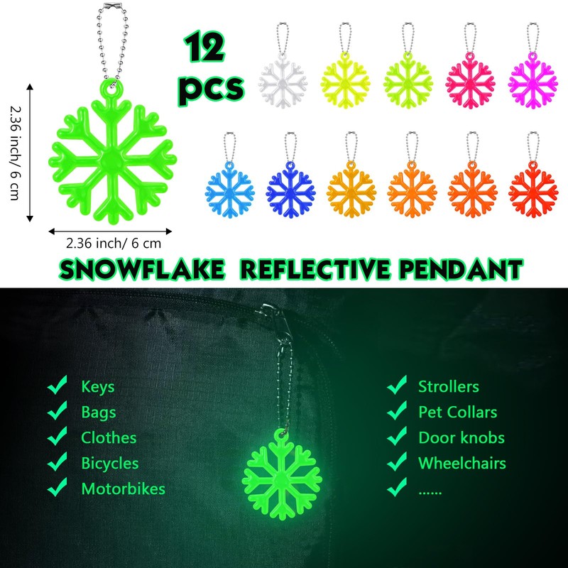 - VARIOUS DESIGNS This set includes 12 adorable snowflake reflective pendants in a range of vibrant colors, allowing you to effortlessly match them to your outfits, gifts and daily style changes