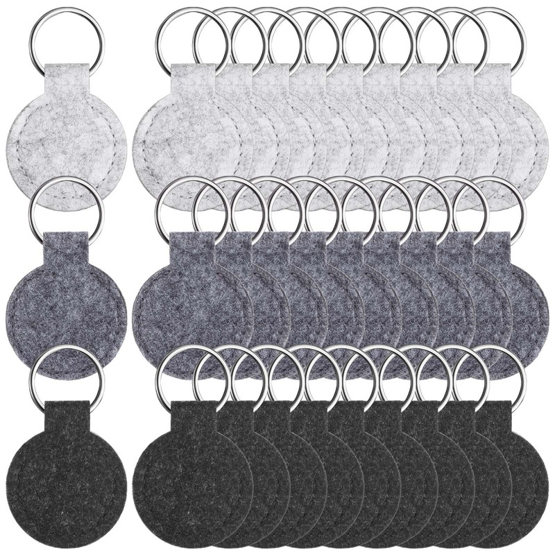 Namalu Pack of 30 Felt Key Chains Round Key Rings for Crafts Blank with Stainless Steel Ring Contains Three Colours for Purse DIY Car Key Decoration Craft Bag (4 cm), As shown in the picture