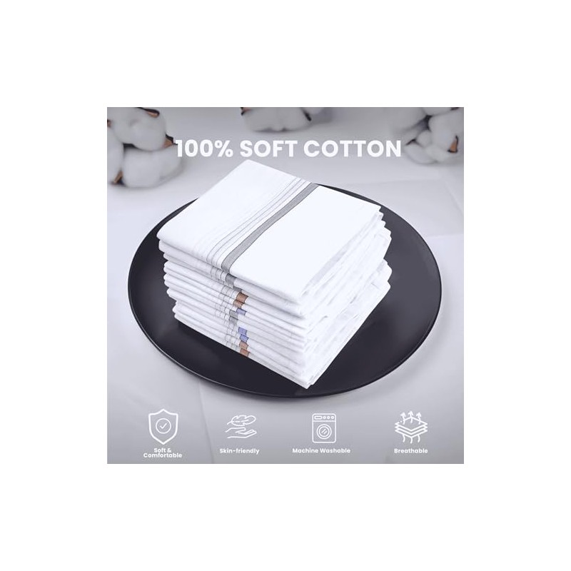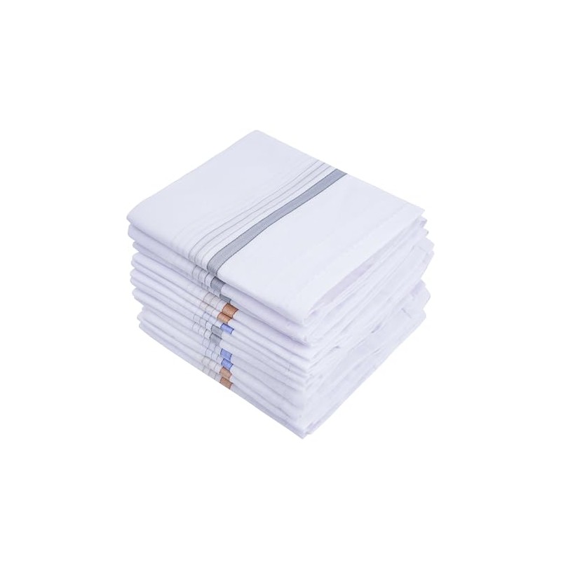 Namaste Trends 100% Cotton Mens Handkerchiefs - 16" x 16" Pocket Square Hankies for Wedding, Business or Daily Use (12, White Design 1)