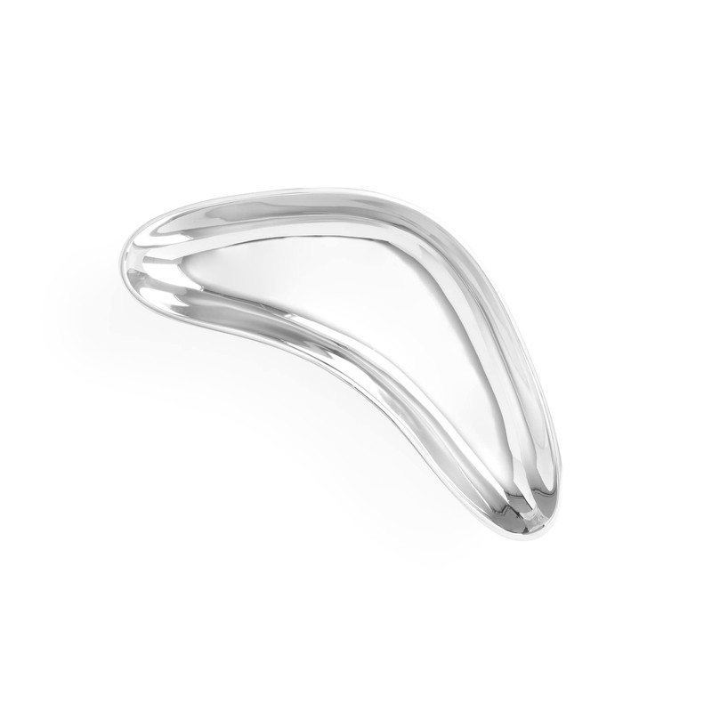 - STATEMENT SERVING DISH: Make an artistic statement with your serveware. The Boomerang Small Tray is an entertaining essential that adds intrigue to the table. The tray features a unique triangular shape with a rounded axis and end points.