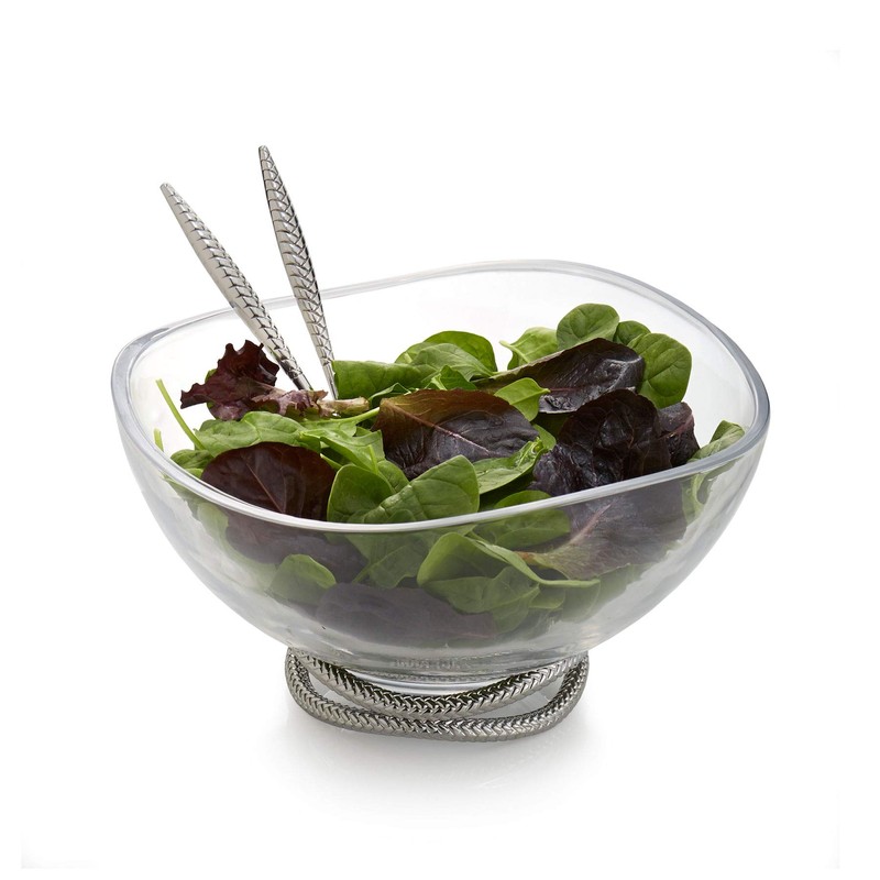 - FOR THE VERSITILE HOST: Take everyday elegance a step further with the Braid Glass Salad Bowl with Servers. Versatile enough to transition between casual and formal occasions, the braided design on the base and servers add just the right amount of intrigue.