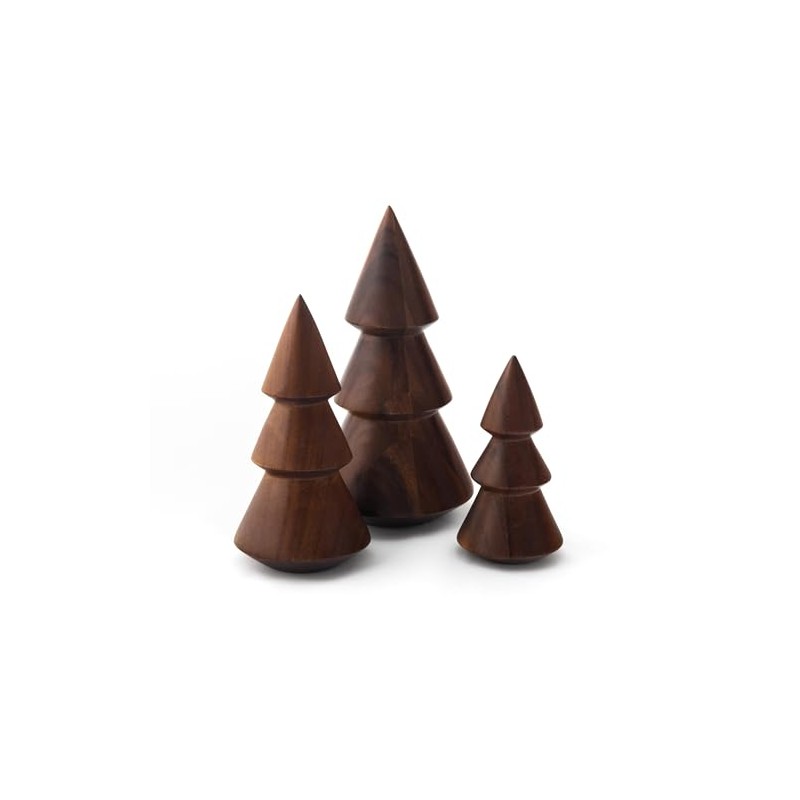 - Elevate your holiday décor with the Nambe Wooden Tree Trio, a set of three beautifully crafted mini Christmas trees figurines designed by Alvaro Uribe. These modern renditions of a seasonal classic are meticulously sculpted from high-quality Acacia Wood.