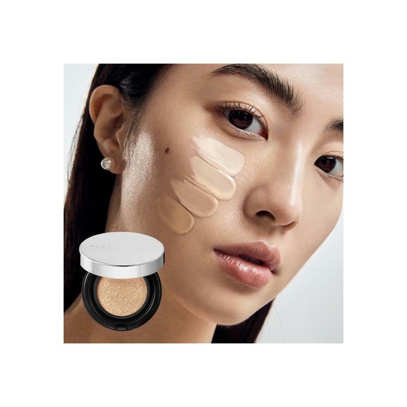 Delivers a clear, natural glow and stays on the skin comfortably and tightly. A thin layer stays tightly on the skin without darkening and breaking up, allowing a long-lasting makeup. The slim Cover Fit Puff releases the formula and helps it adhere evenly to the skin without clumping, thereby allowing you to apply the Fit Cushion like a makeup artist. When re-doing makeup, multiple layers can be built without clumping or sliding off for a natural-looking skin.
