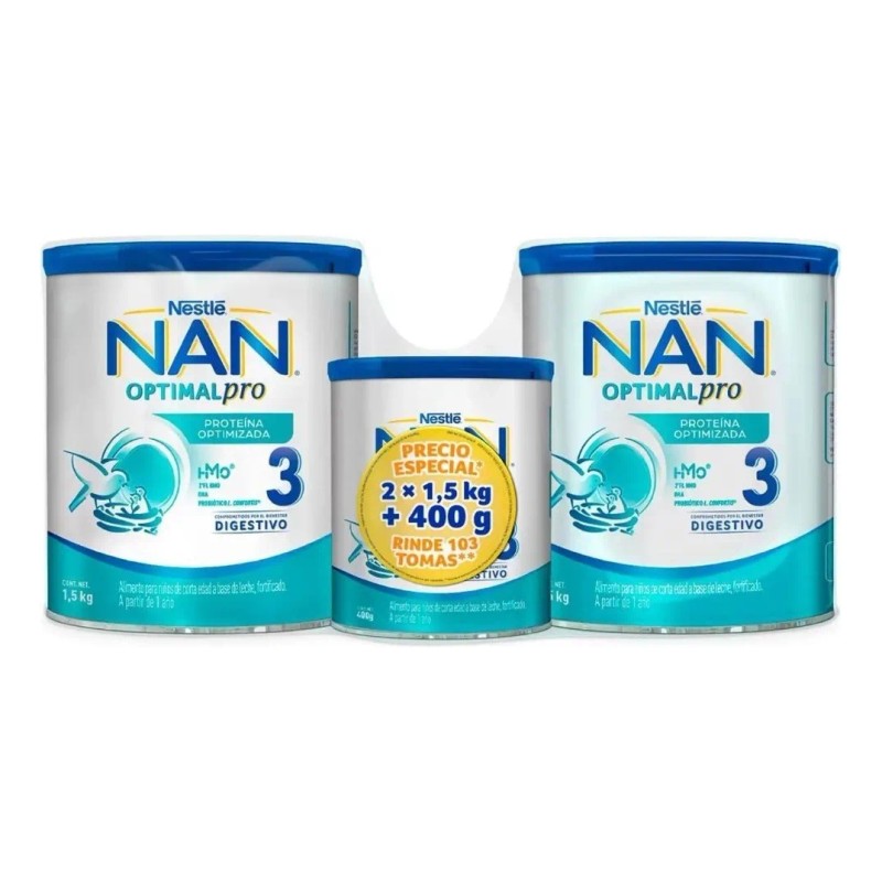 Si buscas una fórmula de continuación con nutrición avanzada, el Pack Nan 3 Optipro (2 de 1.5 kg + 1 de 400 g) es una excelente opción en México para apoyar el crecimiento saludable de tu pequeño. 🍼🌟