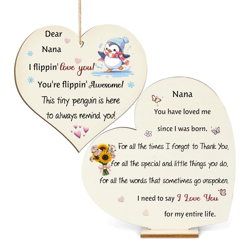 Nana Gifts Birthday Wooden Sign Hanging Ornament 2PC Set Grandma Christmas Presents Wood Heart Plaques Nan Family Mothers Day for Women Thank You I Love You Retirement Appreciate Souvenirs