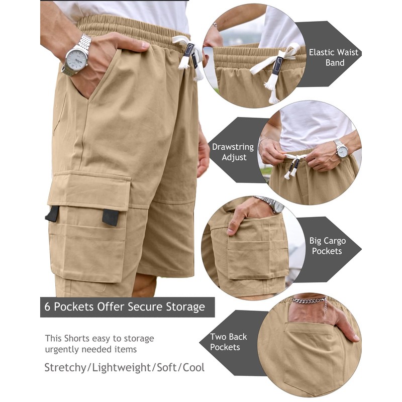 Introducing our specially designed men's cargo shorts, perfect for your workwear needs. These shorts are a must-have for any man who values both style and functionality. With its sturdy construction and thoughtful design, our shorts men are sure to deliver on both fronts while being comfortable to wear all day long. Our mens cargo shorts elasticated waist ensures that they fit perfectly on any body shape, giving you the perfect silhouette and the confidence to take on any task. Thely are made from high-quality materials, which are both lightweight and durable, making them perfect for everyday use. These mens shorts with pockets have ample space to store all your essentials such as your phone, wallet, and keys, making them the perfect all-rounder work shorts men stretch fit. The cargo pockets are roomy, so you can carry your tools and gadgets without feeling weighed down. These men's work shorts are designed to withstand even the toughest of conditions while maintaining their stylish look. Whether you're working outdoors or indoors, our mens shorts are versatile enough to keep up with your demands. In summary, our mens cargo shorts are perfect for any man who values quality and functionality without compromising on style. Order your pair today and experience what it's like to wear shorts designed specifically for you.