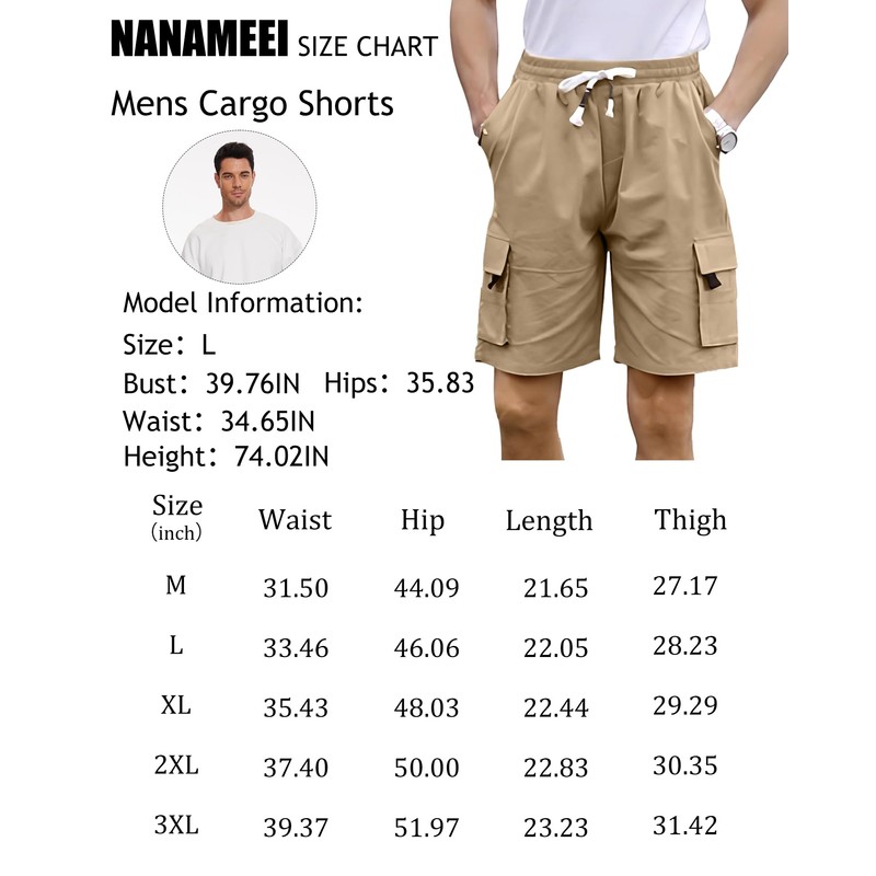 NANAMEEI Mens Cargo Shorts with Pockets Mens Drawstring Work Shorts,Khaki,M