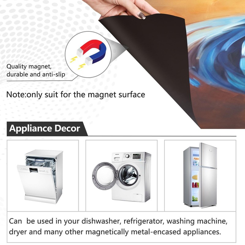 - HIGH QUALITY MATERIAL: Dishwasher magnet covers are made of PVC material with strong magnetism on the back, firm but easy to remove, leaving no trace to protect your kitchen appliances. These magnetic dishwasher covers hide the scratches, dents on your dishwasher and improve the decor of your kitchen.