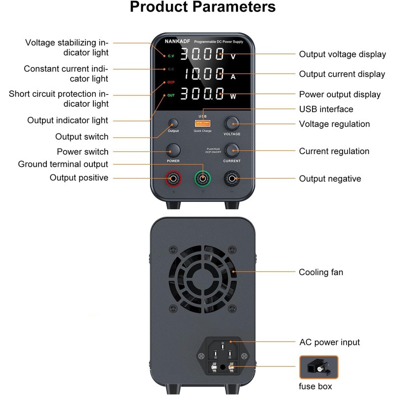 - USB Fast Charging Port: The variable power supply is configured with an 18W fast charging port. No more mplaining about mobile phones or repaired devices not being charged in time. The NANKADF dc power supply allows you to avoid this dilemma. It charges your devices quickly anytime, anywhere.
