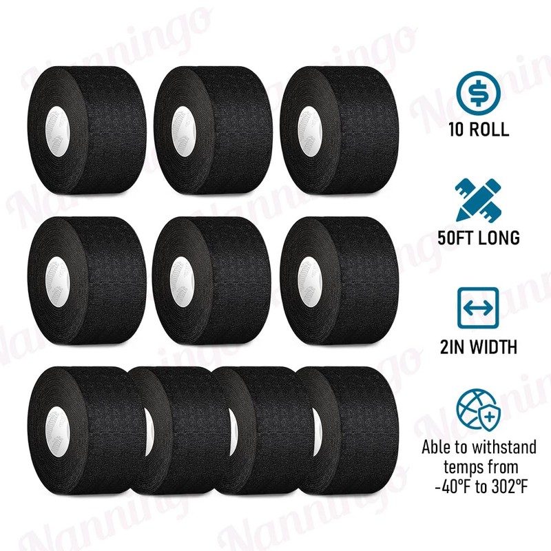 Nanningo Wire Harness Tape 2" x50ft (10-Pack) High Temp Wiring Loom Harness, Self-Adhesive Felt Cloth Electrical Tape for Automotive Engines, Noise Dampening, Cable Protection