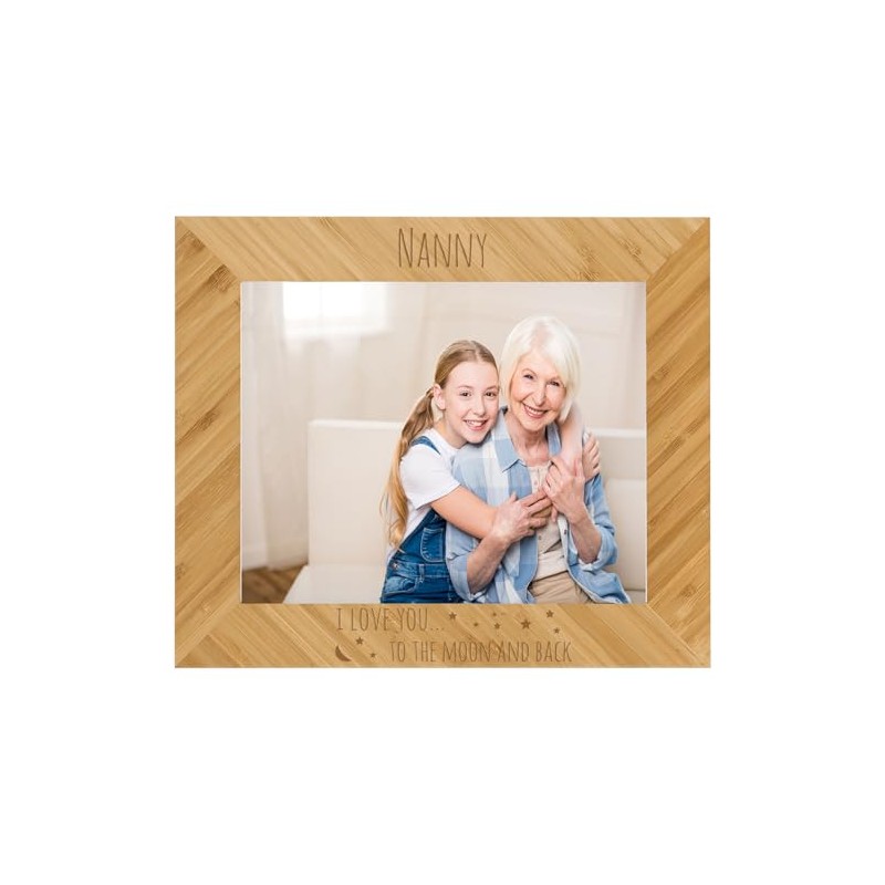 Nanny - I Love You to The Moon and Back - Natural Bamboo Hanging/Tabletop Personalized Group Family Photo Fits 4x6 Landscape Picture Custom Laser Engraved Wood Frame