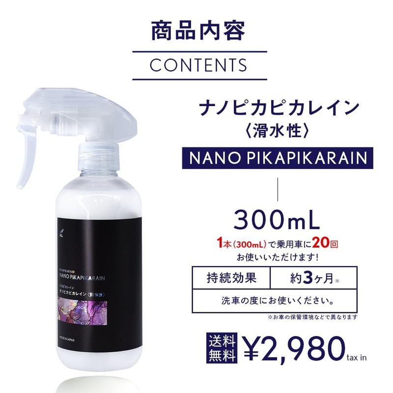 - After washing the vehicle and wiping away water droplets, spray the product into a cloth that has been moistened and wrung out, and wipe 3 to 5 times.