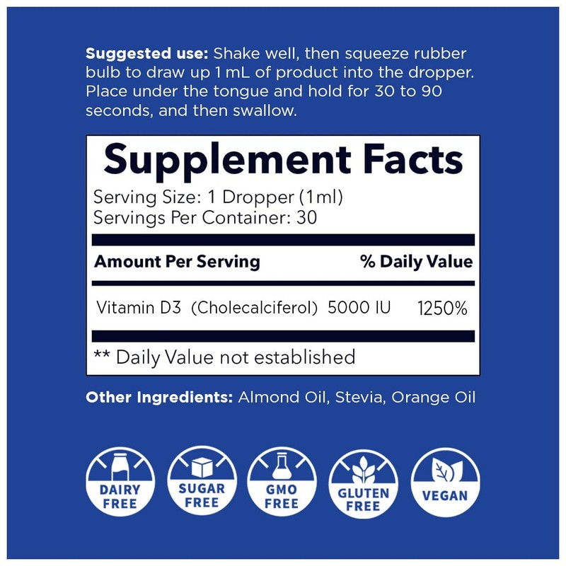 Nano Vitamin D3+K2 Nanosized Liquid Particles | Rapid Absorption | 5000 IU Potent Formulation - 1Fl Oz | Non-GMO, Gluten Free | Supports Bone, Joint, Heart & Immune Health