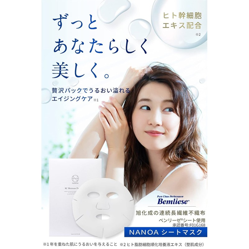 NANOA Face Pack, Human Stem Cells, Sheet Mask, Aging Care, EGF, Moisturizing, Asahi Kasei Premium Sheet Material, Face Pack, Pack of 5
