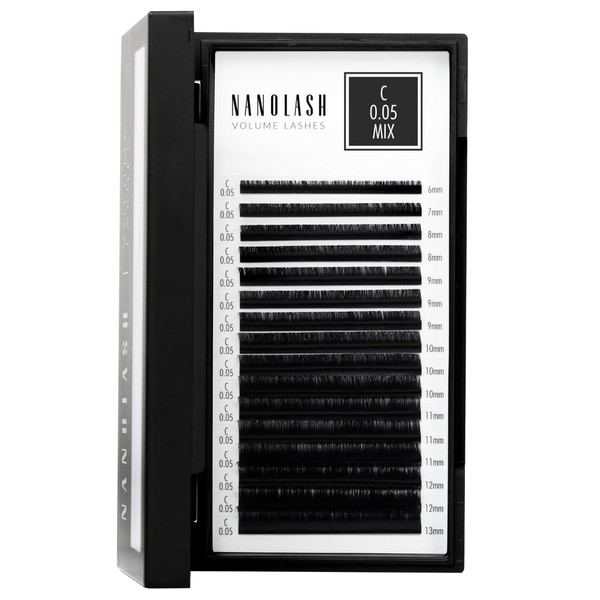 Nanolash Eyelash Extensions for Volume Technique, Eyelashes for Professional Extension (0.05 C, Mix 6-13 mm)