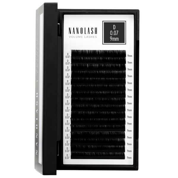 Nanolash Eyelash Extensions for Volume Technique, Eyelashes for Professional Extension (0.07 D, 9 mm)