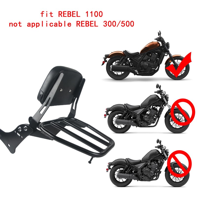 - Scope of Application: The sissy bar for motorcycles is suitable for Honda Rebel 1100. Please note that this is not suitable for Rebel CMX 250 300 500 installation.