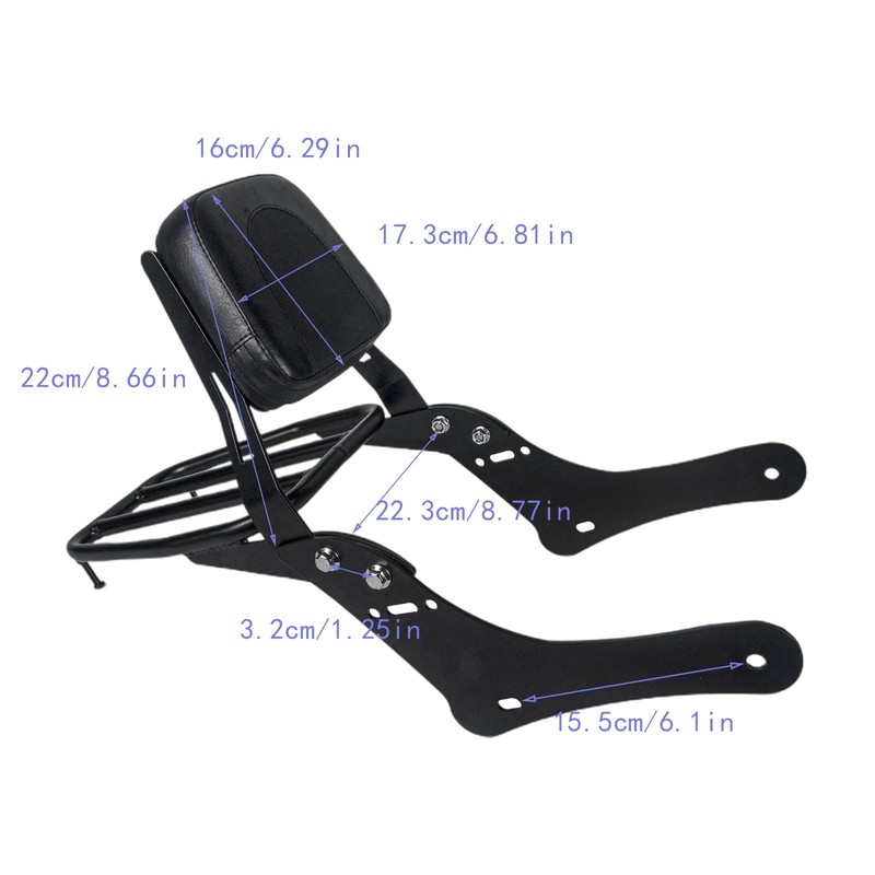 - High-Quality Material: The for honda rebel 1100 backrest with luggage rack is made of high-quality steel metal and high-quality soft sponge cushions. It is made of high-quality synthetic leather and has built-in zippers. It is neatly sewn and will not let water seep into the sponge.