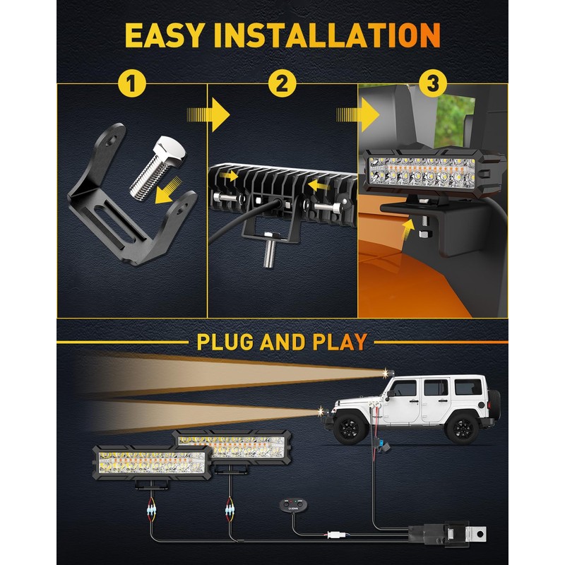 - [Easy installation and Connection] - Our LED light bar kit is very easy to install and connect, you can check our pictures or videos for specific installation and connection steps.
